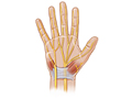 - De Quervain's tenosynovitis. This can occur in the hand and wrist when tendons and the tendon covering (sheath) on the thumb side of the wrist swell and cause pain.