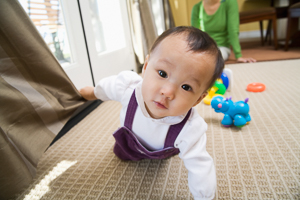 - Your child may not look directly at or respond to faces or large, colorful objects. A baby who can't find small objects when crawling on the floor may have cataracts.
